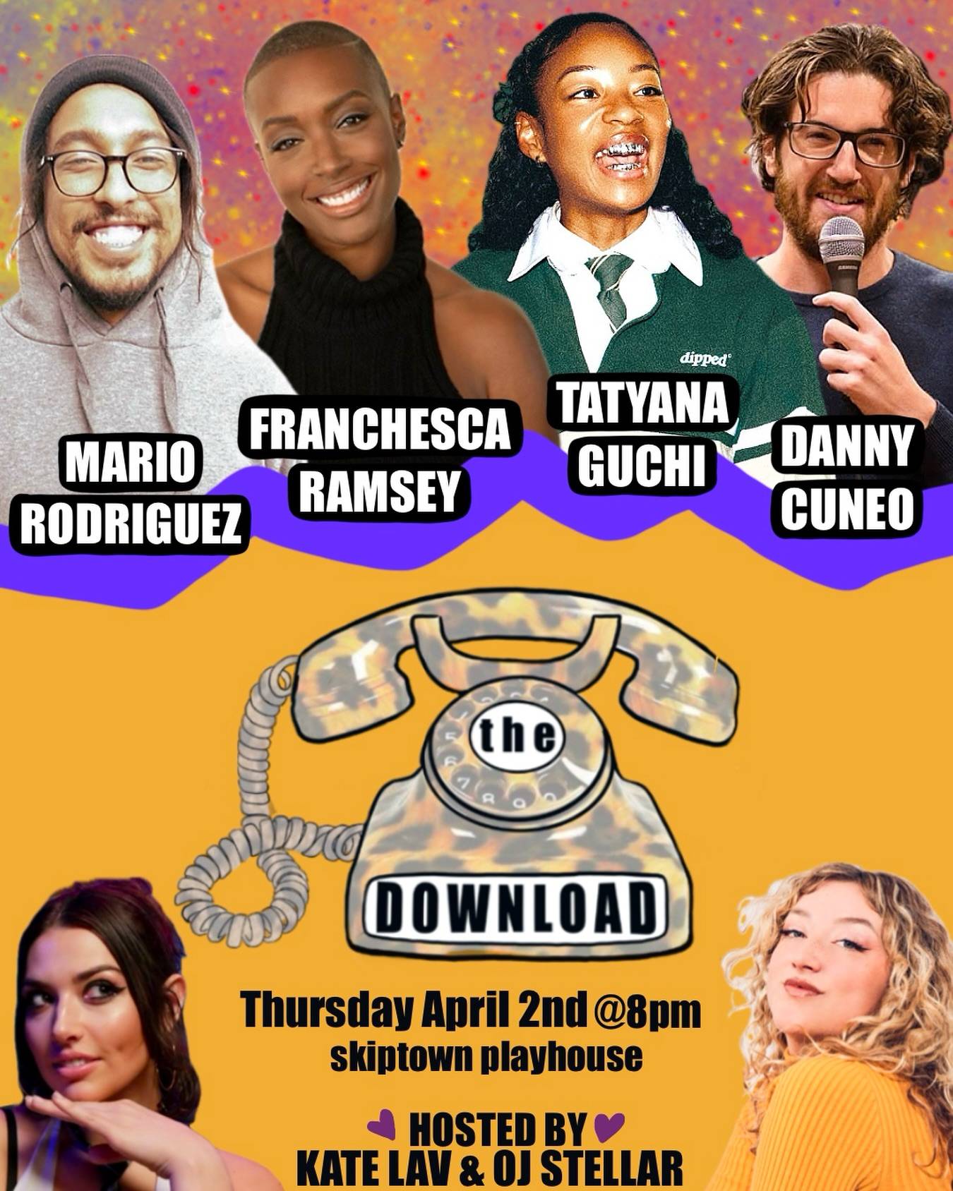 Our latest lineup is here! We're bringing you yet another unforgettable night of comedy at The Download this Thursday (April 2nd @ 8 PM), featuring a fresh lineup of some of the funniest comics around! THIS WEEK'S LINEUP:- Mario Rodriguez- Franchesca Ramsey- Tatyana Guchi- Danny Cuneo Seats fill up fast — grab your tickets now and don't miss out on the best weekly comedy show in town! Buy tickets Unsubscribe · Preferences